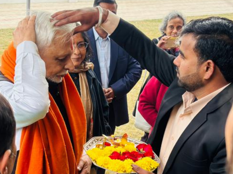 Exactly three years and 10 months later, the peepul tree forms the center of a beautifully designed circular building which melds into the surrounding fields, becoming part of the village landscape. On 14 January 2026, the auspicious occasion of Makar Sankranti when the sun begins to move northwards towards warmth and light, Sri M and Smt. Sunanda Ali inaugurated the building in the presence of many distinguished guests, the students, staff, and volunteers of The Satsang Foundation, Delhi Kendra who help with the running of the school.