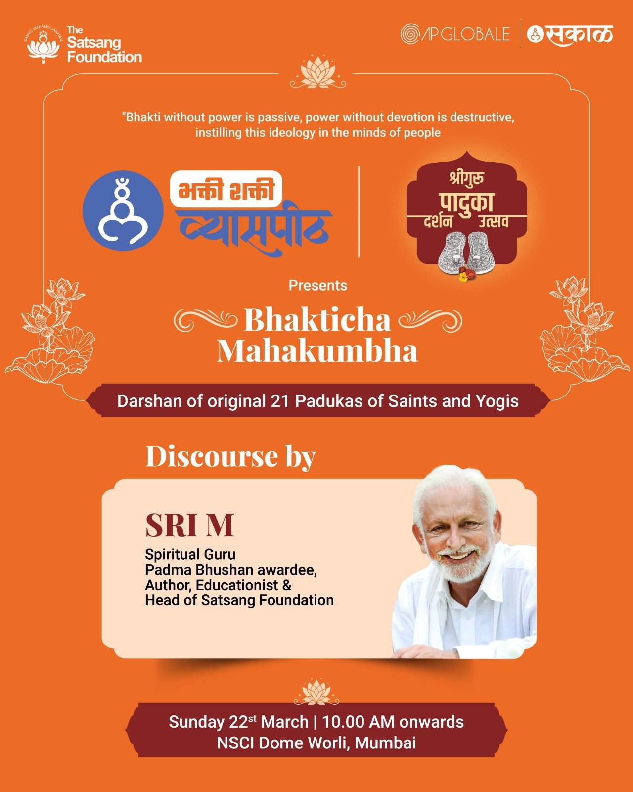Sri M will be in Mumbai on 21-22 March 2026 for the Paduka Utsav.
